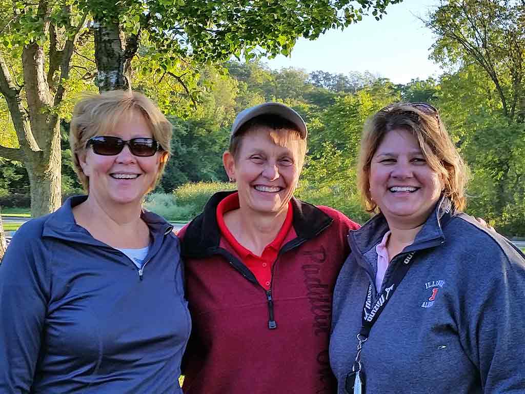 JoAnn Foertsch Altenbach, ’76 Annual Fund, Mother McAuley High School; Mary Anne Smrz, Red Kayak Institute; and Linda Balchunas Jandacek